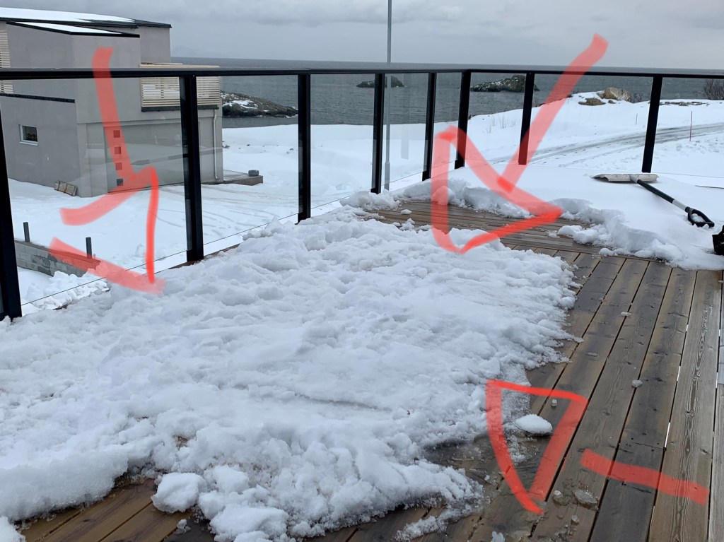 Fan å! Kommer jo ikke til å få inn denne matta med det første, kan den bare være der til all sne er tint og den eventuelle sola har tørket den?